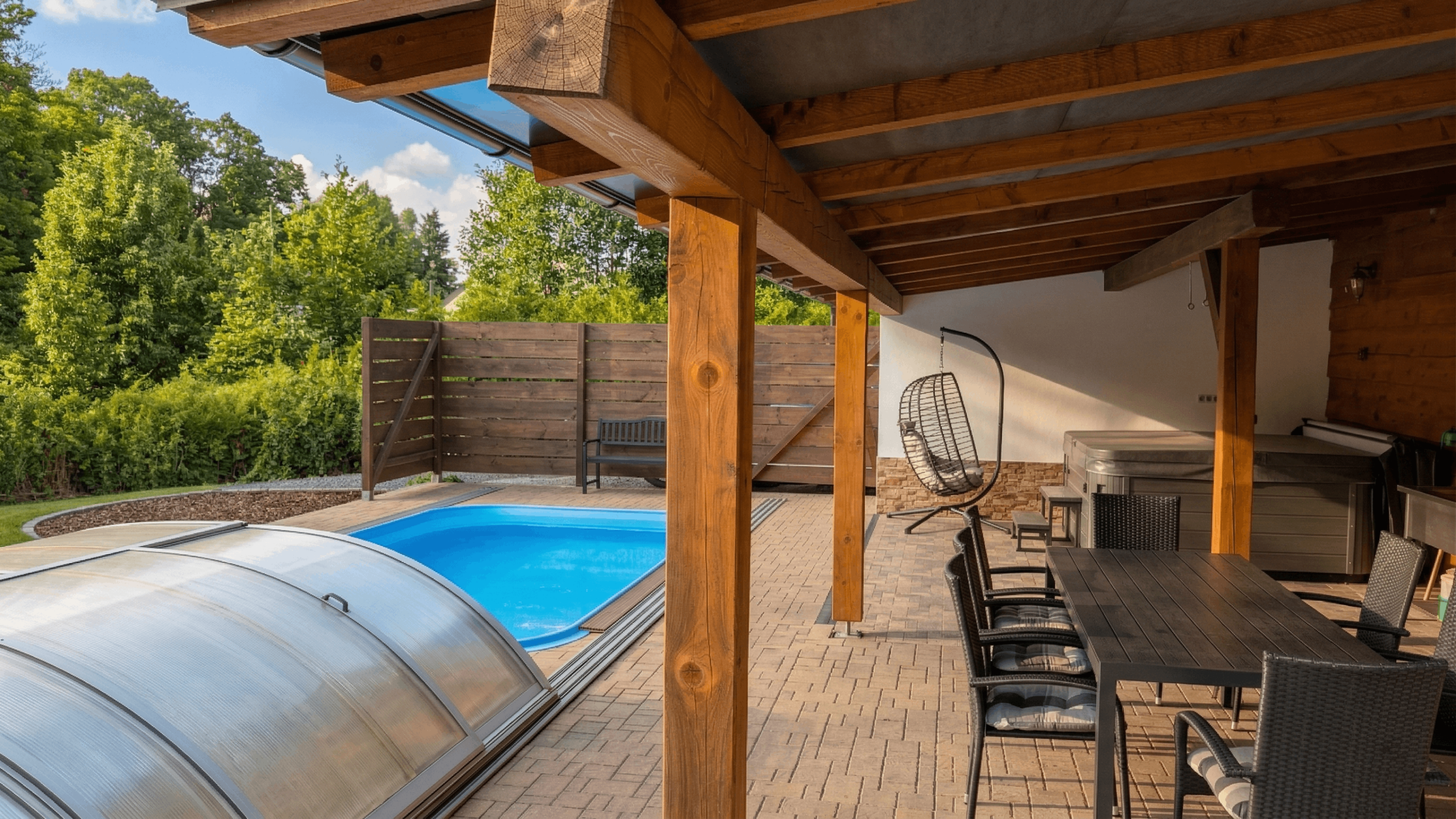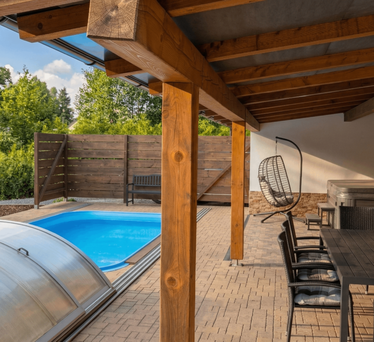 Ať už sem tedy přijedete za aktivním pohybem, vzděláním, nebo jen vypnout při nicnedělání, o vaše pohodlí je u nás náležitě postaráno. Wellness zázemí na zahradě – venkovní zastřešený bazén, finská sauna, ochlazovací sud a celoroční vířivka jsou vám k dispozici, takže relax máte doslova na dosah ruky.